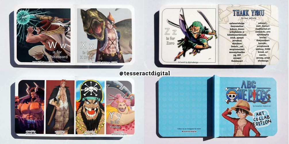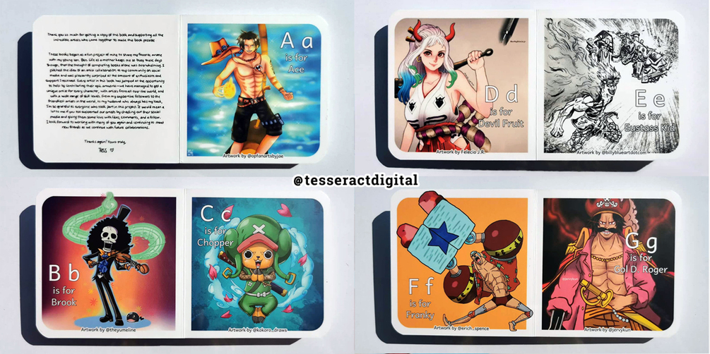 This book is a collaboration of artworks created by 28 different artists from all around the world with a range of styles and skill levels. From New Zealand to America, around France, Philippines, India, and more, all these artists who love One Piece worked together and helped me create this book for my son, just for a bit of fun. If you're like me and want to help raise the next generation of anime lovers, at the same time as supporting a lot of incredible artists, this is the book for you. The size and material of this book makes it perfect for small hands, not too big too hold and is durable for kids still learning to be gentle. Story time is a lot of fun when talking about all your favorite characters, all beautifully illustrated with love!